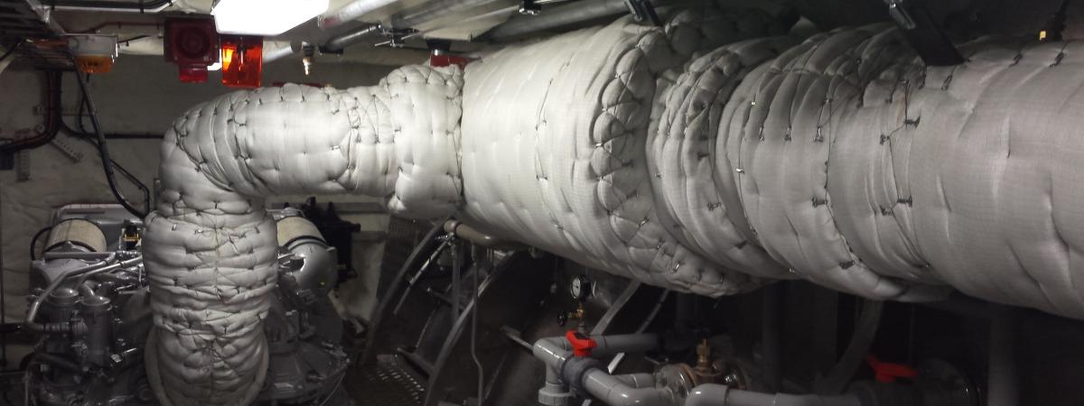 Gespecialiseerd in het isoleren van scheepsmotoren met isolatiematrassen. Toepassingen: Hoofd- en hulpmotoren Flensen Turbo's Uitlaten Compensators Alle matrassen worden op locatie ingemeten en met de hand op maat gemaakt en geplaatst.